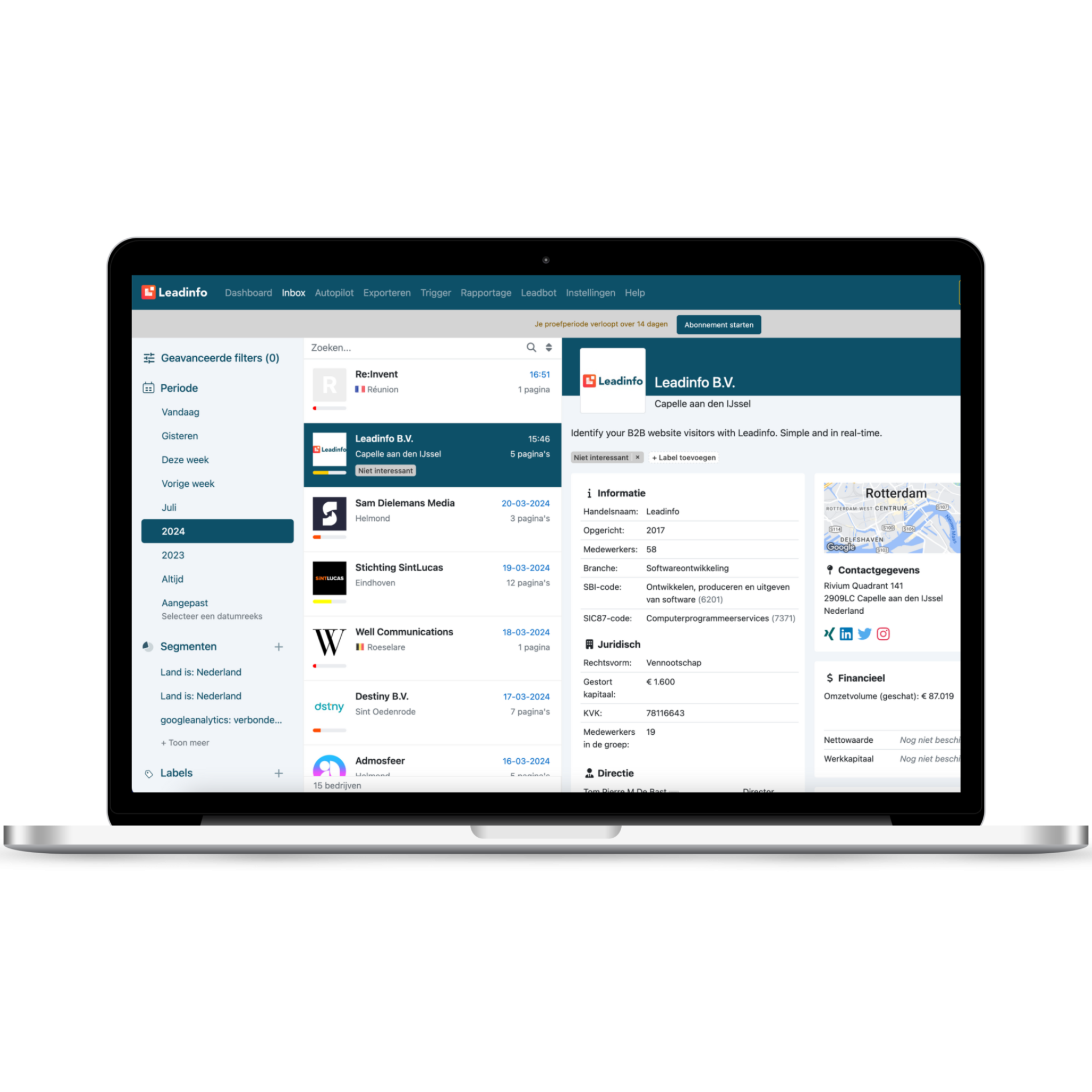 Met Leadinfo werken we inmiddels al meer dan twee jaar intensief samen om websites niet alleen zichtbaar, maar ook meetbaar en commercieel effectief te maken. Waar veel websites anoniem verkeer genereren, maakt Leadinfo inzichtelijk welke bedrijven de website bezoeken en waar de echte kansen liggen.